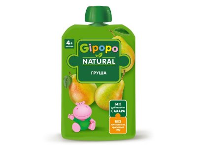 Фруктовое пюре Gipopo из груш в удобной упаковке - пауч подходит для прикорма малышей с 4 месяцев.